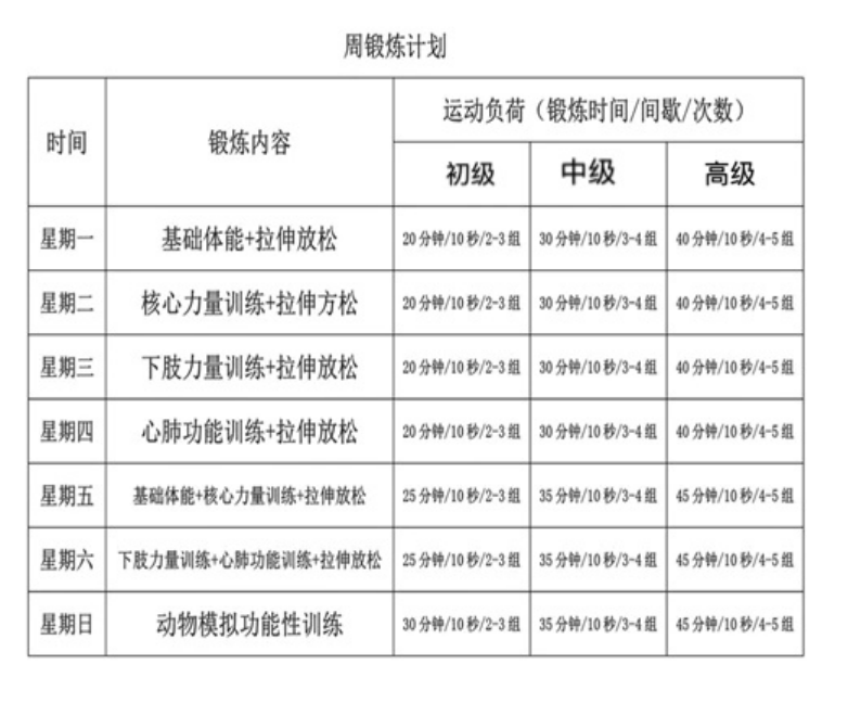 注:动力性练习10次为一组,静力性练习30秒为一组,可以根据自身情况作调整。