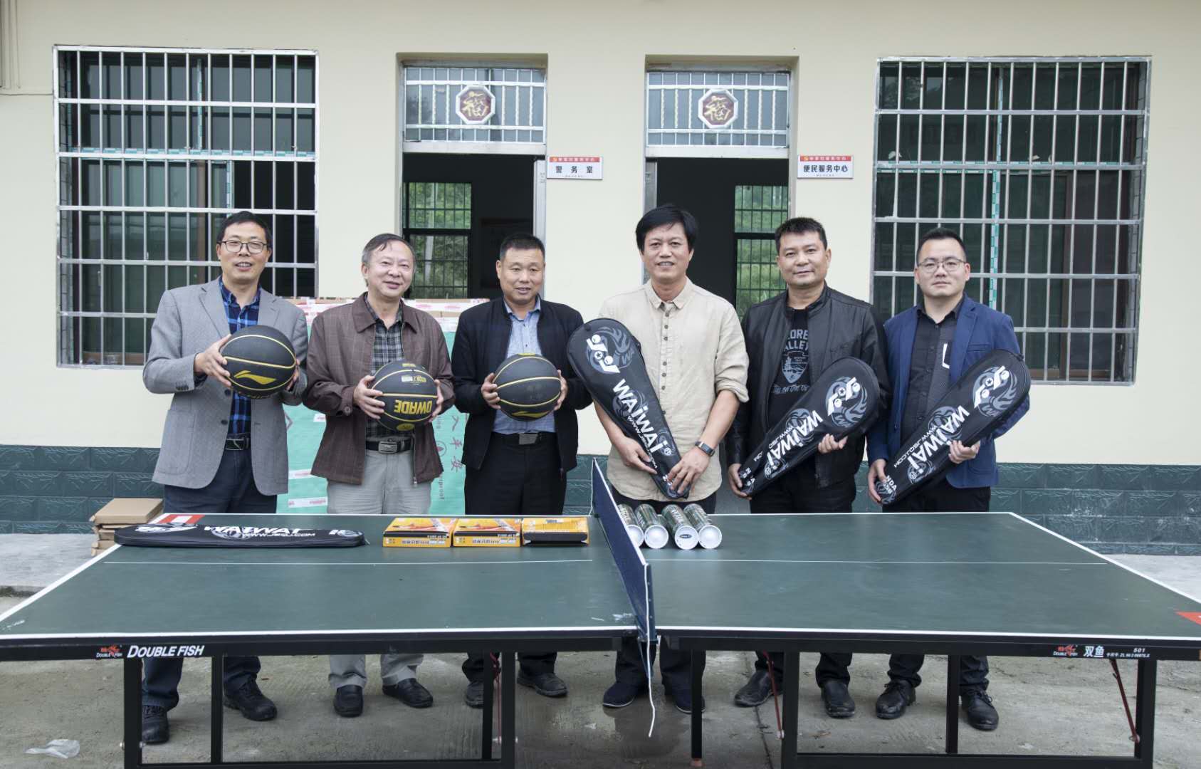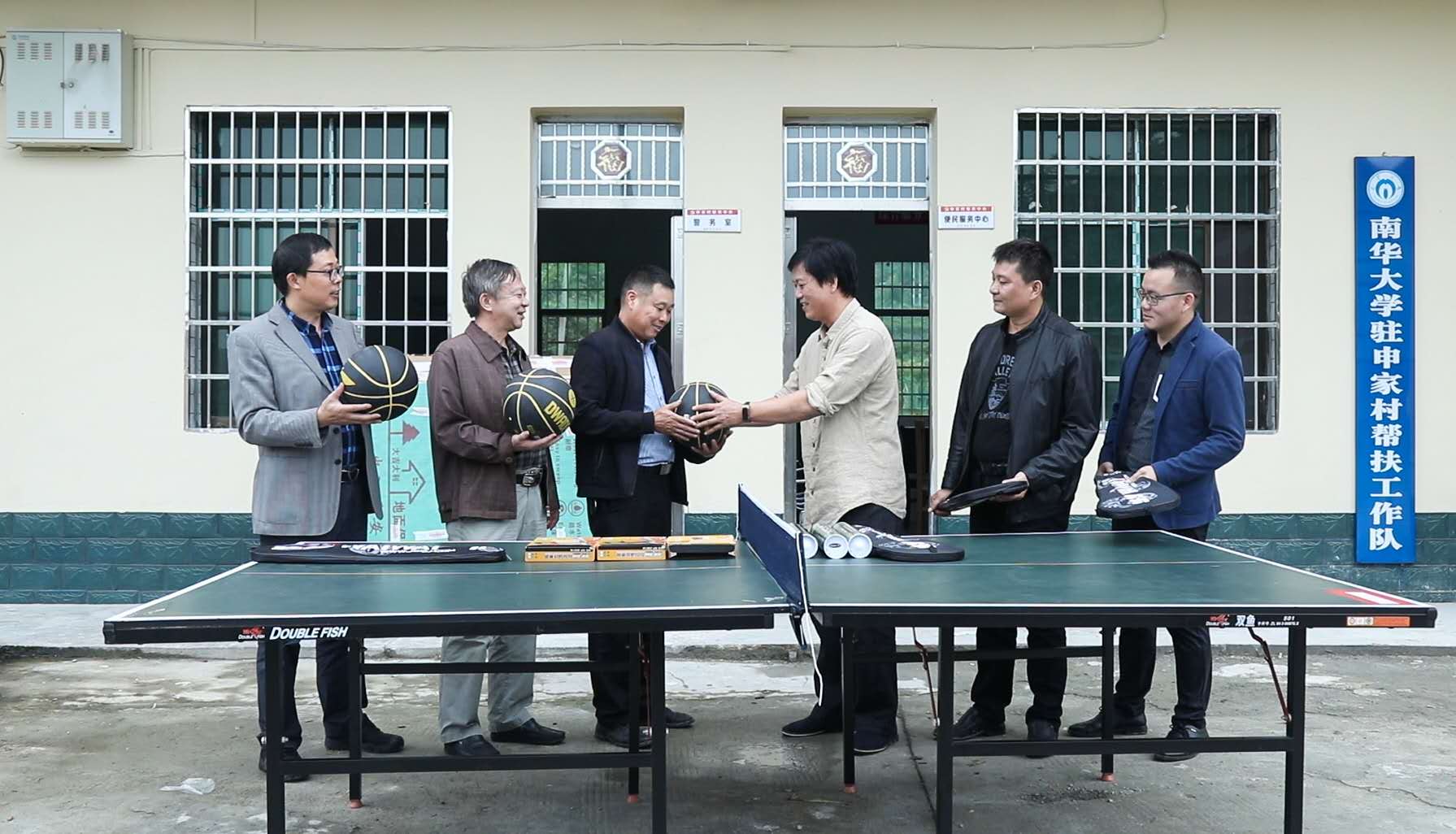 潘本衡一行不顾远途劳累,刚抵达申家村,便将2台乒乓桌的4件组装件搬下车,谭志刚与伟德国际VICTOR1946运训教研室主任贺仕刚示范安装好了1台乒乓球桌。随后,谭志刚把3个篮球、4副羽毛球拍、4副乒乓球拍等仪器交给村主任康佑兵。看着这些从衡阳来到申家村的高端器材,康佑兵激动地握着谭志刚的手连声道谢。为检验球桌的性能,潘本衡与康佑兵当即来了一场友谊赛,一来一回间,二人打的十分开心,现场不时响起快乐的笑声,真正的做到了南华——申家一家亲。