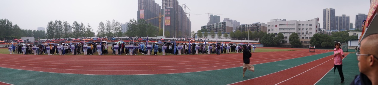 小雨绵绵,歌声昂扬。运动会总裁判长谭志刚、校工会常务副主席潘本衡、“精神文明奖”评选组副组长廖迎春先后宣布了学生组比赛成绩及“优秀运动员”、“优秀裁判员”评奖结果、教工组比赛成绩以及学生组“精神文明队”获奖名单。