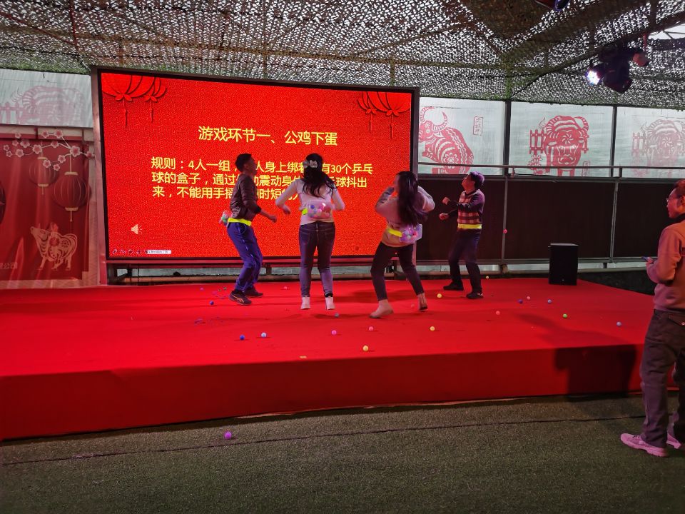 晚会在舞蹈《芒种》中拉开序幕。随后,开始了“公鸡下蛋、群龙取水、弹瓶盖、踩气球”等游戏节目和抽奖环节。现场教职工踊跃互动,积极参与,增添活跃了晚会气氛。