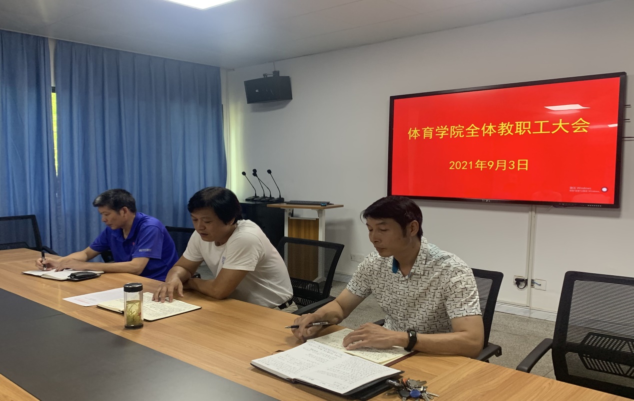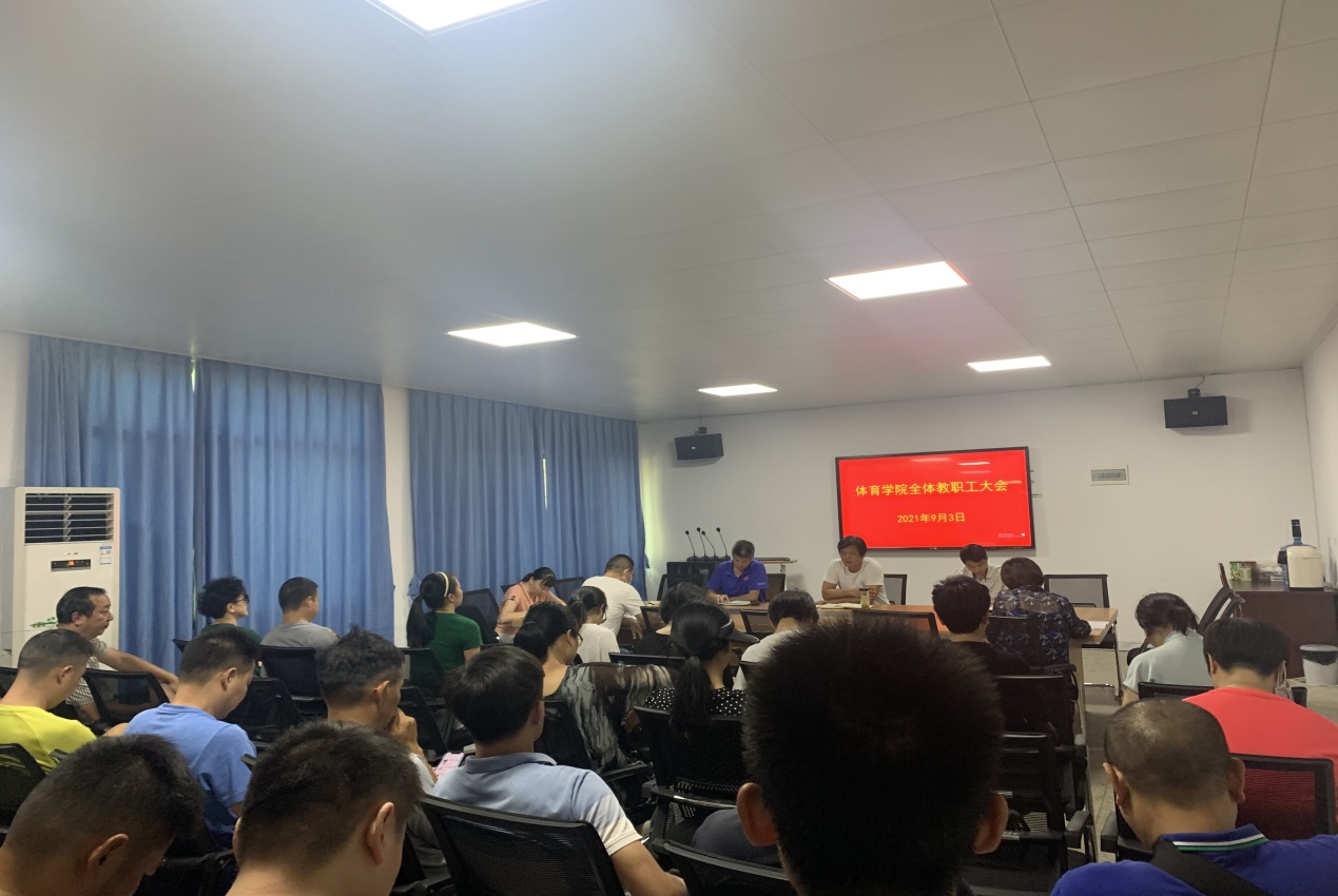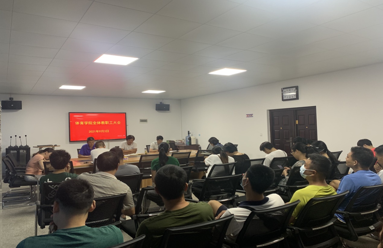 会上,谭志刚总结了学院暑期完成的主要工作,对新学期工作进行了安排布署:一要提高政治站位,切实做好常态化防御防控与开学准备工作。二要认真做好常规教学工作,切实抓好体育教学质量,上好开学第一课。三要认真做好赛事筹备工作,切实抓好2021年度湖南省大学生足球赛在校举办的相关工作。四要做好学校男、女足球队参加全国大学生足球竞赛工作。五要做好学校2021年大学生田径运动会组织筹备工作。六要切实推进体育场馆维修改造工作。七要高度重视师德师风建设,认真做好教职工思想政治教育工作。八要做好科研工作,积极鼓励教师开展2022年度国家社科基金申报准备工作。九要对照学校年度重点工作目标,逐步完成学院各项工作任务。十要认真做好日常管理工作,不断提升管理质量和服务水平。