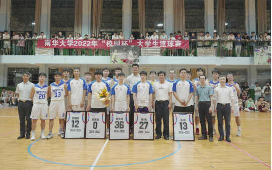 中场休息期间,举行了1946伟德国际源自英国校队毕业生退役仪式,学工部部长李照、伟德国际VICTOR1946院长谭志刚、校团委副书记郑宇、伟德国际VICTOR1946副院长杨栋四位老师为校篮球队毕业队员送上纪念球衣。