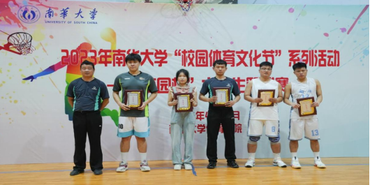 船山学院党委书记阳剑兰为男子扣篮大赛获奖运动员颁奖