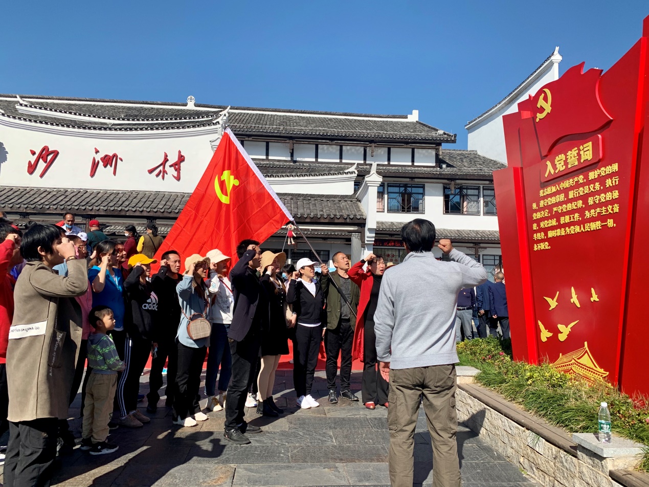 14日下午,谭志刚书记带领大家齐聚在沙洲村红色广场,面对鲜红的党旗,重温了入党誓词。他要求大家要深刻认识“半条被子”的背后,是风雨同舟鱼水深情;与人民群众同呼吸、共命运、心连心,是中国共产党取得革命胜利的根本保证,也是战胜一切困难的力量源泉;广大体育教育工作者要从党的光辉历史中吸取红色精神力量,切实将红色基因、红色历史、红色革命精神融入立德树人,加快推进教育现代化,努力培养担当民族复兴大任的时代新人,培养德智体美劳全面发展的社会主义建设者和接班人。