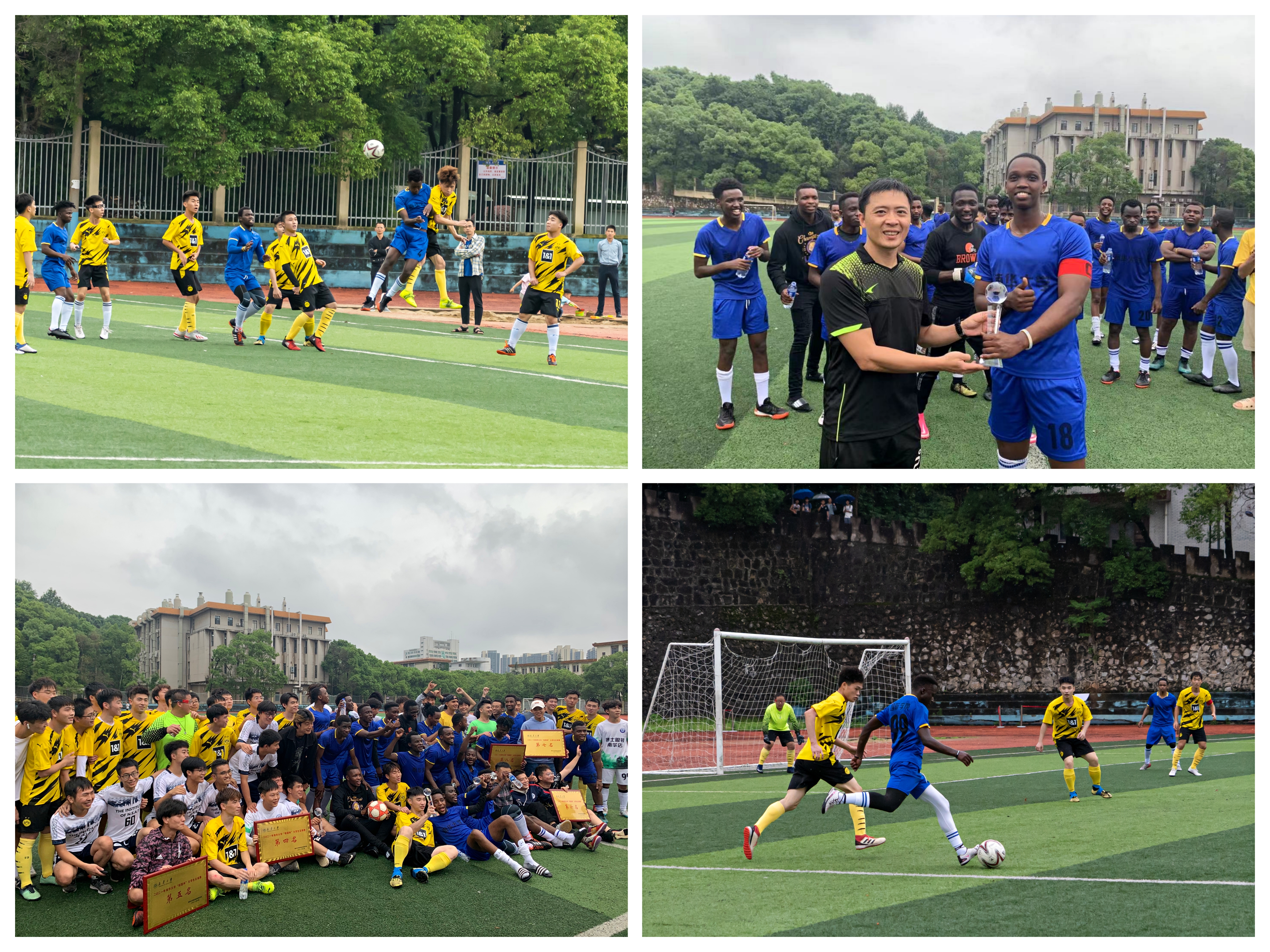 5月30日下午的决赛在红湘校区南校足球场进行,资源环境与安全工程学院对战国际学院。虽然天公不作美,但是球员们依然精神饱满,在雨中你追我赶、顽强拼搏。最后一声哨响,比赛圆满结束,国际学院以3:1赢得本场比赛荣获冠军。